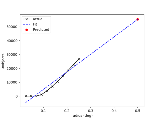 Estimate the execution time and the number of objects for a Cone Search service URL. Estimation only makes sense for a query that would return a huge amount of matches. The prediction naively assumes a linear model, which might not be accurate for some cases. It also uses the normal Cone Search, not the asynchronous version. This example uses a custom timeout of 30 seconds and runs silently (except for warnings):